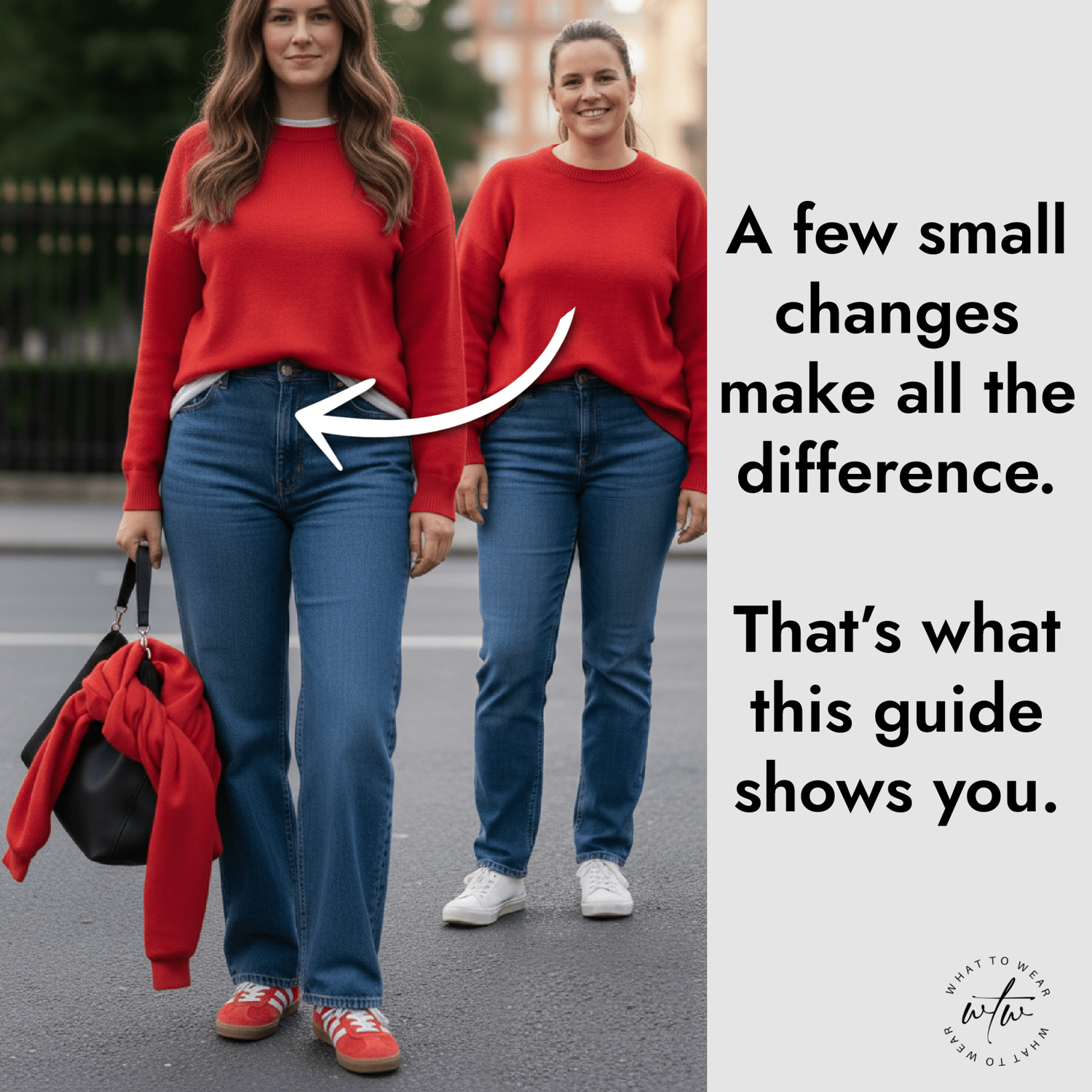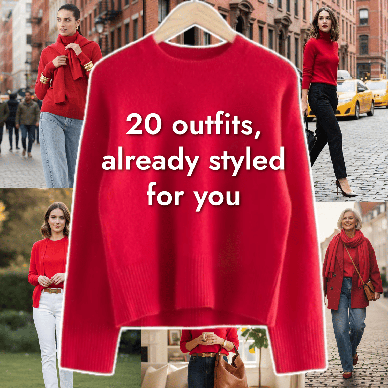 Inside, I share complete red-sweater outfit formulas, with 20+ ready-to-wear outfits built using pieces you likely already own. You’ll see how to mix and match more confidently, stop second-guessing your choices, and get dressed without the usual “does this look right?”